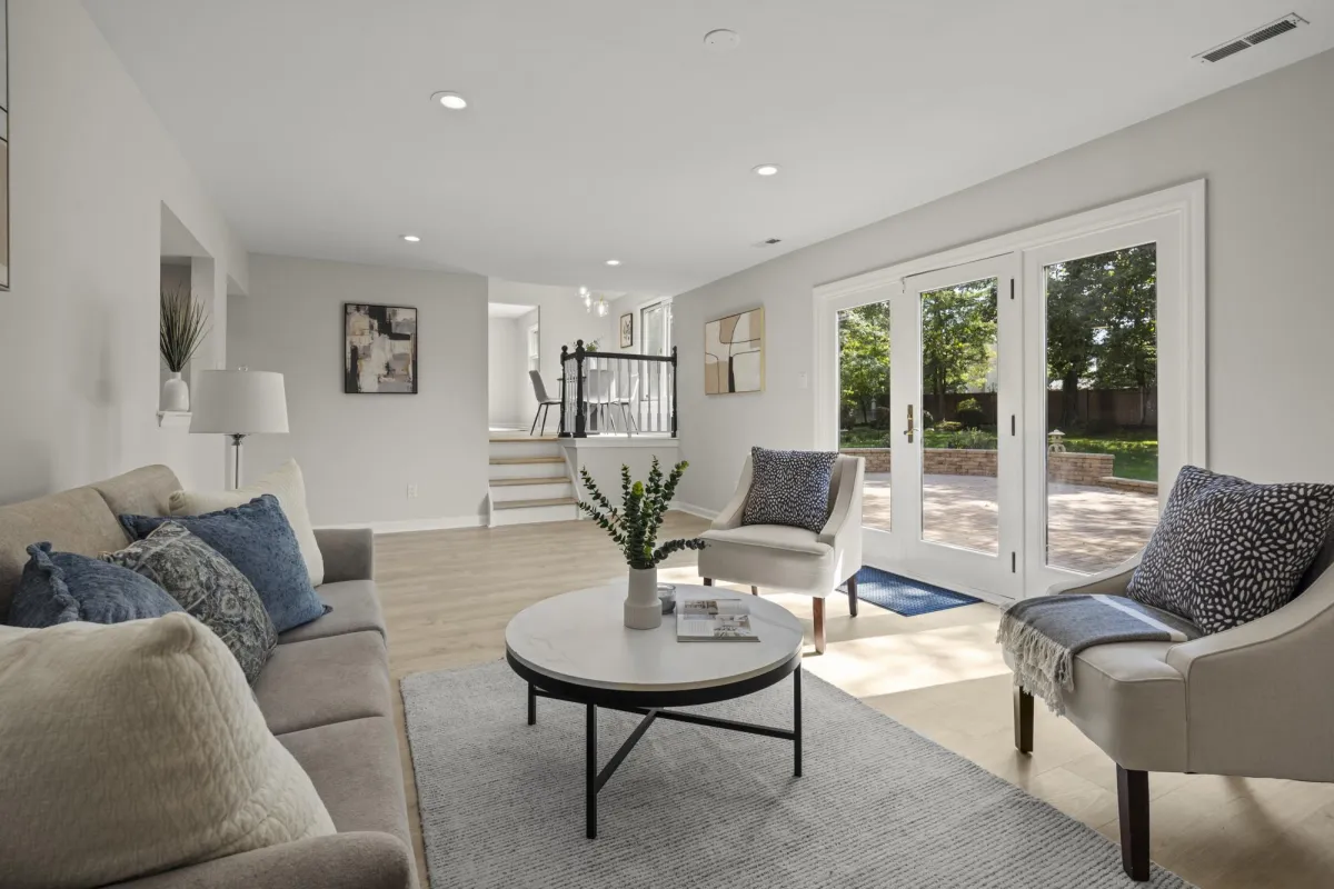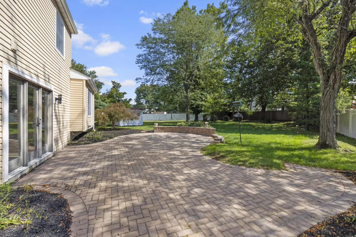 Outdoors, relax on the newly hardscaped patio, surrounded by professional landscaping and a low-maintenance irrigation system.