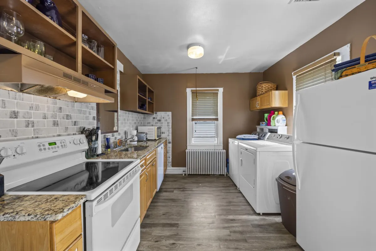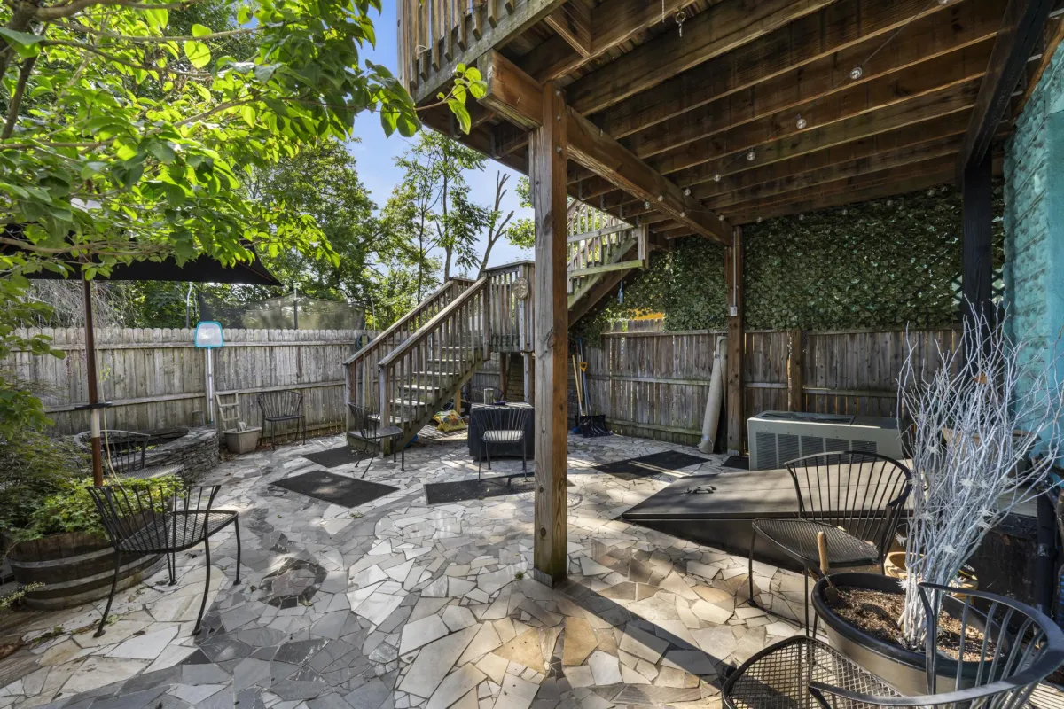 A private rear entrance leads to a fully fenced stone patio oasis with a koi pond and mature landscaping. A raised wood deck, approximately 177 square feet, offers the perfect space to relax or entertain. Upstairs, the one-bedroom, one-bath apartment includes an open-concept living and dining area, a bright kitchen, and a spacious walk-in closet. The apartment is quiet, private, and just steps from all the activity on Main Street. Whether you envision a boutique storefront, an artist’s studio, or a live-work lifestyle in a vibrant walkable neighborhood, 320 12th Street delivers a standout presence and endless potential.